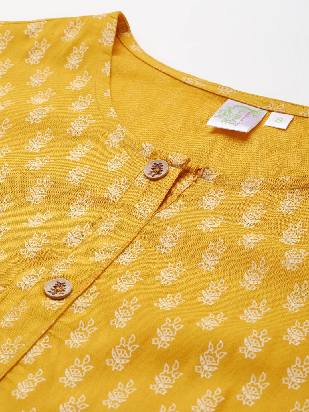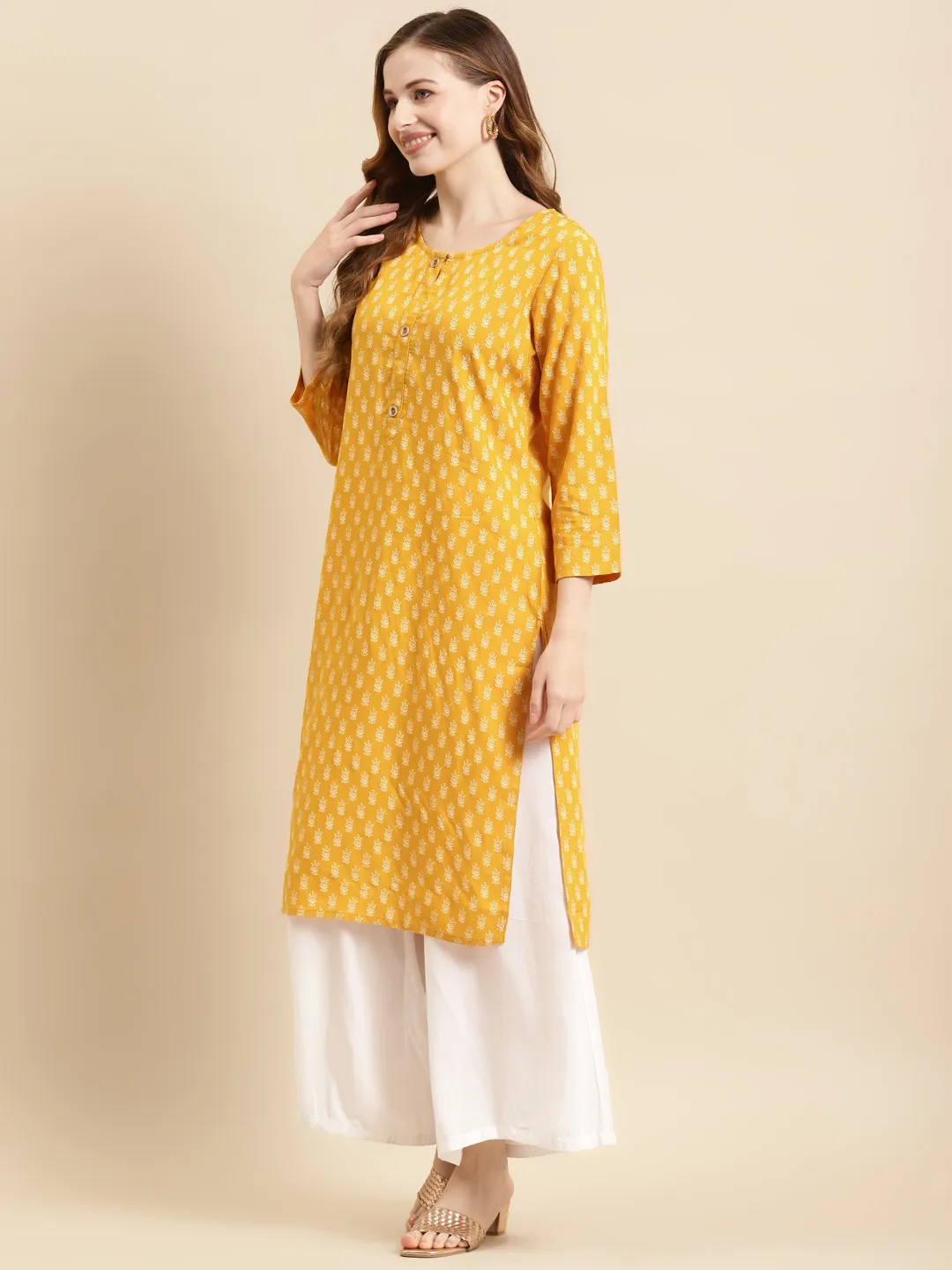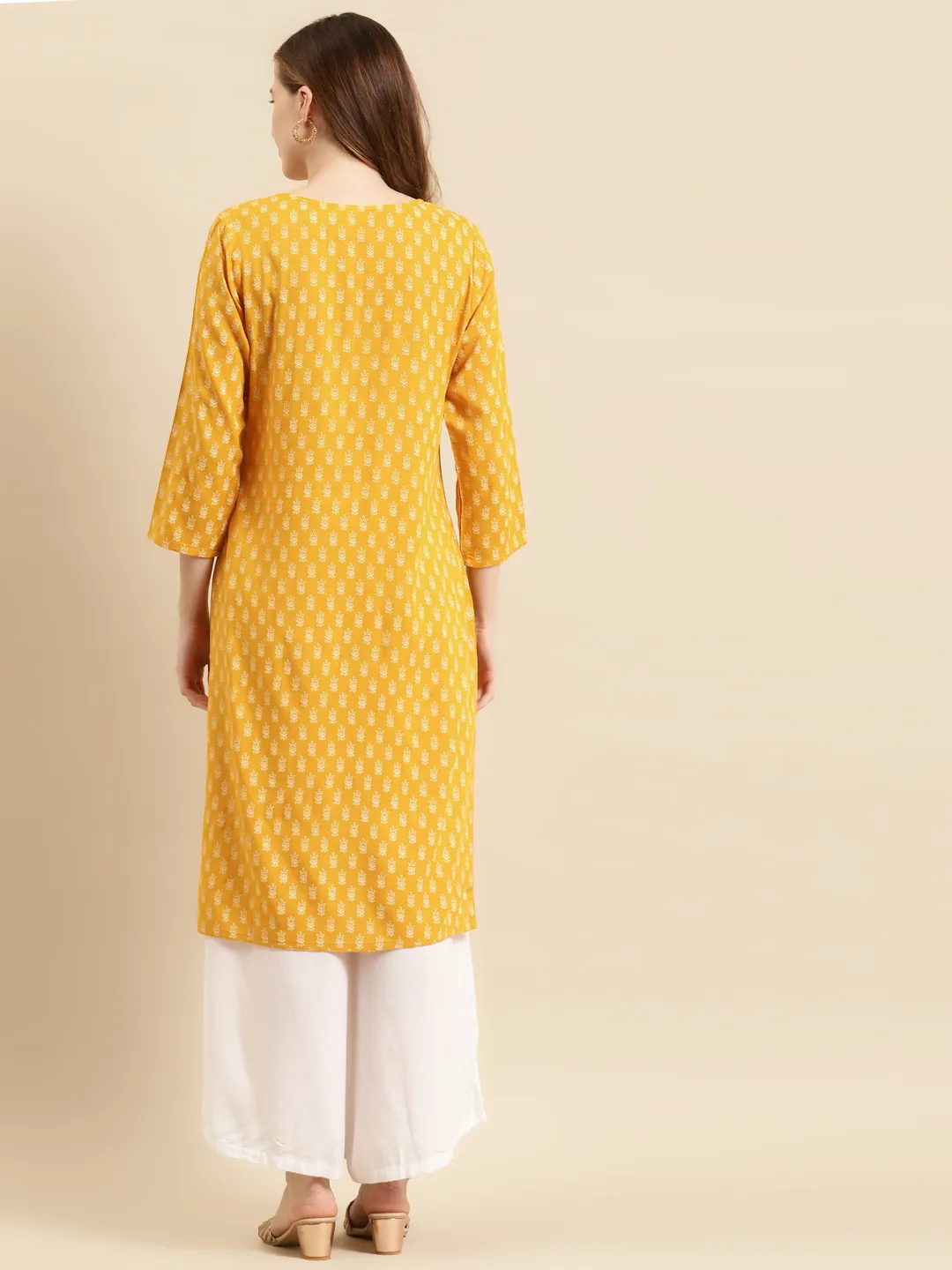 Ethnic motifs printed Round neck Three-quarter, regular sleeves